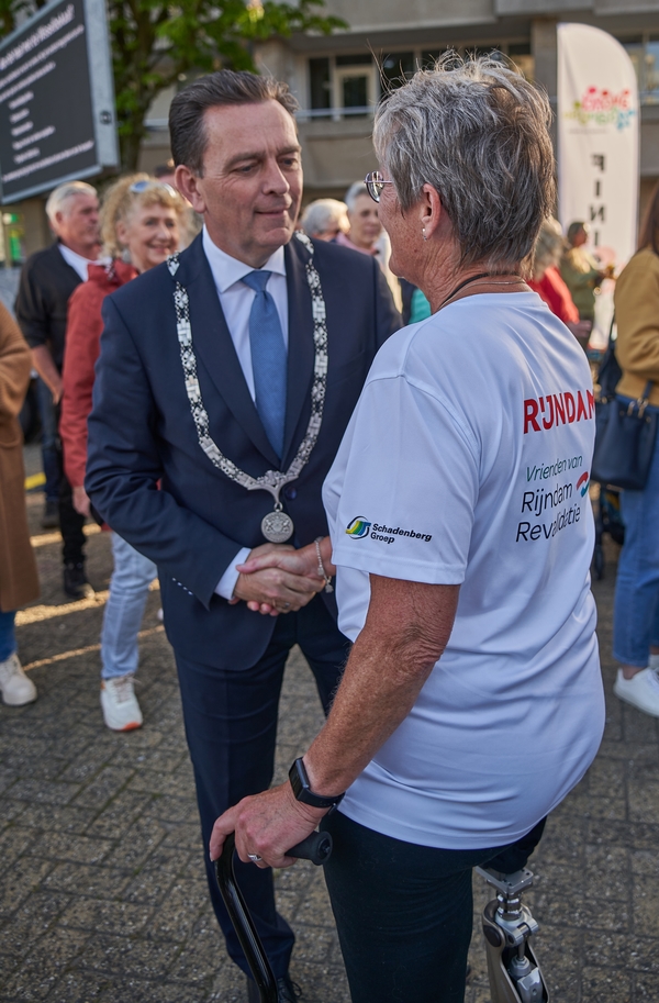 Burgemeester Bezuijen feliciteerde Thea met haar prestatie bij de intocht