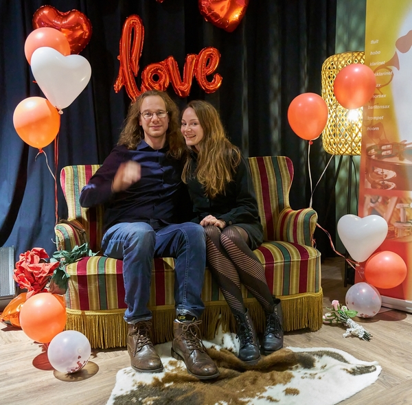 Het Orkest Collectief stelde bij hun liefdesconcert alles in het teken van de liefde. Bij binnenkomst in het CKC konden de bezoekers op de foto in de Loveseat om daarna naar de met hartjes, papieren rozen en ballonnen versierde zaal te gaan.