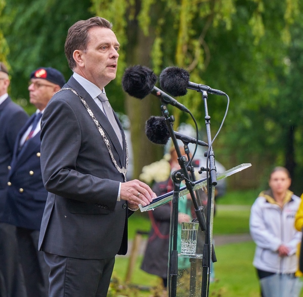 Burgemeester Bezuijen sprak tijdens de herdenking op 4 mei vooral over de vrijheid, die kostbaar en kwetsbaar is. “Wat zou jij doen, wat zou u doen, wat zou ík doen als ons die vrijheid zou worden ontnomen en er weer alle reden is om bang te zijn?”