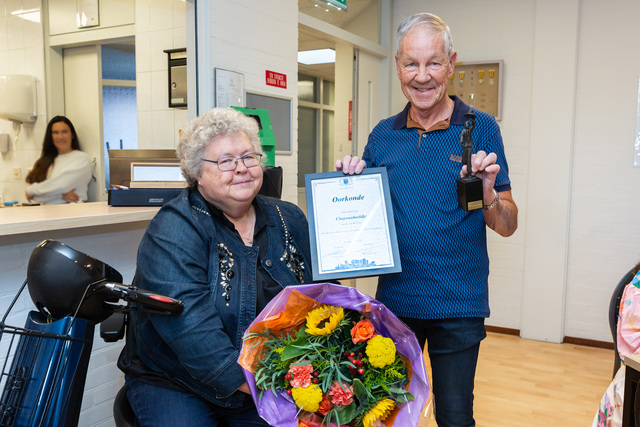 De heer Bert van den Ende uit Rokkeveen mocht op zaterdag 13 juli een Chapeaubeeldje ontvangen uit handen van wijkwethouder Marijke van der Meer. Het Chapeaubeeldje is er voor inwoners die zich inzetten voor de leefbaarheid in een wijk en een flinke betrokkenheid tonen met hun omgeving.