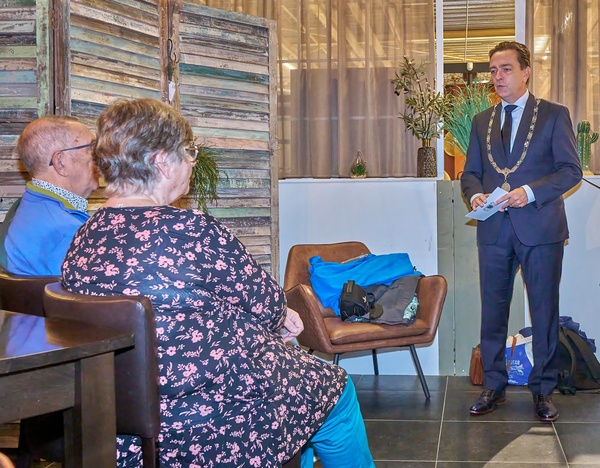 Burgemeester Bezuijen bedankte het echtpaar voor al hun inzet en sprak zijn bewondering uit voor hun werk. “Ondanks hoge leeftijd en eigen ziekte heeft u zich met volle overgave ingezet om een warme en veilige plek te bieden voor kankerpatiënten in Zoetermeer. Na de diagnose kanker staat de wereld echt even op zijn kop, dat weet je even niet meer wat je moet doen. Het Maja Anjohuis biedt dan een plek waar lotgenoten met elkaar kunnen praten over twijfels, angsten, onzekerheid en gevoel van hoop. Dit was er niet in Zoetermeer, jullie hebben het van de grond af opgebouwd. Een fantastisch initiatief met workshops, inloopbijeenkomsten en activiteiten. Dat doet u niet alleen, maar samen met meerdere vrijwilligers die als bezoeker van het inloophuis zo geïnspireerd werden om mee te helpen.”