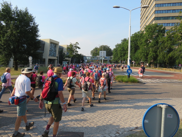 Een grote groep Zoetermeerders loopt mee in de Vierdaagse van Nijmegen, vanuit Sportief Wandelgroep Zoetermeer. Ze zijn overal goed te herkennen aan hun felgroene shirts en vandaag lekker op weg naar de laatste wandeldag en de intocht in Nijmegen.