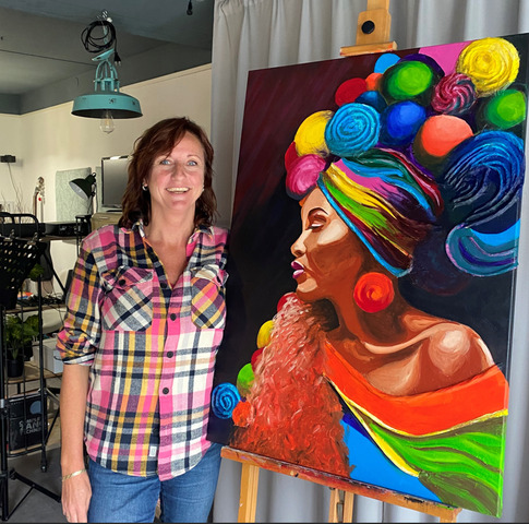 Olga gebruikt diverse verfsoorten om haar schilderijen een unieke uitstraling en diepte te geven. Ze werkt vaak in vlakken, waarbij de kleuren naast elkaar worden geplaatst en niet realistisch zijn. Haar creativiteit en technische vaardigheid maken haar werk herkenbaar en geliefd bij kunstliefhebbers. Haar achtergrond in muziek en zang blijken een unieke invloed te hebben op haar schilderwerk, wat resulteert in expressieve, kleurrijke en levendige portretten. “Ik kan ook een banaan schilderen, maar dat vind ik niet zo leuk, zeg ik altijd als men hier naar vraagt”, schatert Olga uit.