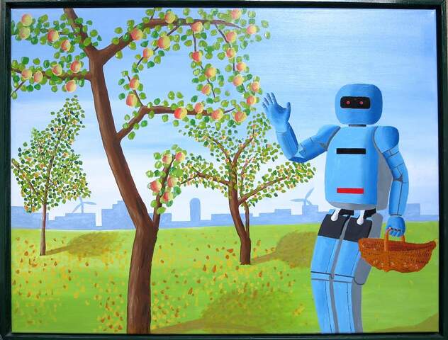 Met een collectie van zo’n honderd olieverfschilderijen, speelt Helmut moeiteloos met het contrast tussen natuur en techniek. Zijn werk is een mix van surrealisme en subtiele humor, waarbij krachtige, zichtbare kleuren de toon zetten. “Ik schilder tamelijk impulsief, met sterke kleuren die meteen in het oog springen”, vertelt Helmut. Zijn creatieve proces begint met een onderwerp, waarna hij zorgvuldig foto’s verzamelt van elementen die hij nodig heeft. Vervolgens schetst hij een ondertekening met potlood voordat hij met olieverf aan de slag gaat. Soms bouwt hij het schilderij laag over laag op om extra diepte en nuance te creëren. “Het fijne aan olieverf is dat ik er lang mee kan werken en kan blijven verfijnen”, rondt Helmut af. Zijn techniek en benadering maken zijn kunst niet alleen visueel krachtig, maar geven het ook een uniek karakter.